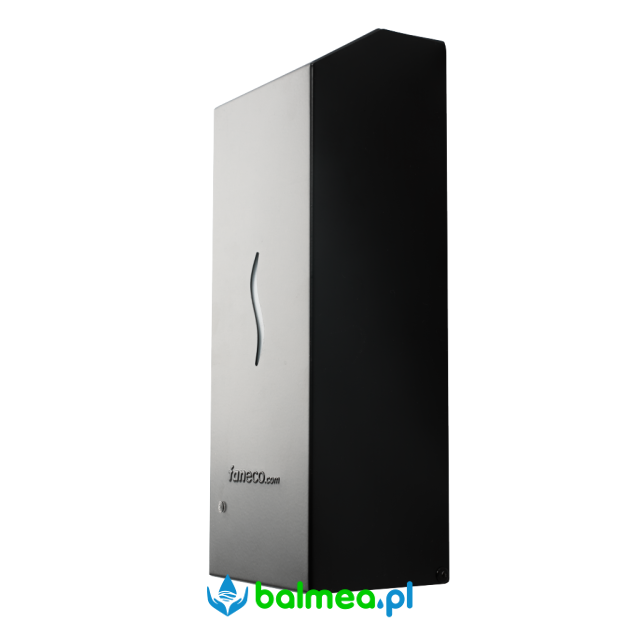 Elektroniczny, ścienny dozownik mydła w płynie i środków dezynfekcyjnych w kolorze czarnym. Wykonany ze stali nierdzewnej 304. Dozownik posiada okienko do kontroli mydła w zbiorniku. Wyposażony w zawór niekapek. Zamykany na kluczyk. Automatyczne bezdotykowe dozowanie pozwala na zachowanie najwyższego poziomu higieny. Duży zbiornik pozwala na umieszczenie dozownika w miejscach o wysokim natężeniu ruchu. Tego typu dozowników nie należy montować w bardzo wilgotnych i chemicznie agresywnych pomieszczeniach takich jak pływanie, natryski. Polecany do hoteli, restauracji, klubów, biur.