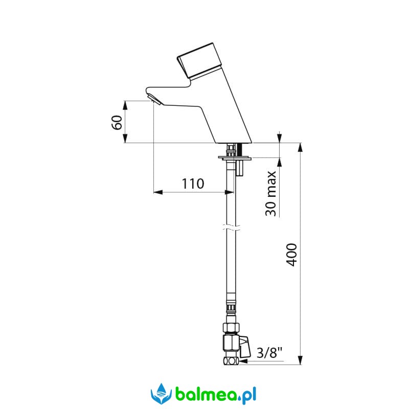 Bateria czasowa, umywakowa, stojąca z przyciskiem do delikatnego uruchamiania. Pokrętło wykonane z metalu a w nim regulacja temperatury. Bateria wykonana z litego, chromowanego mosiądzu odpornego na wszelkie ataki wandalizmu. Czas wypływu nastawiony na 7 sekund, możliwość regulacji od 3 - 10 sekund. W standradzie z zaworem odcinającym. Wydajność ustawiona na 3 l/min, przy czym istnieje możliwość rgulacji wydajności od 1,5 do 6 l/min. Sito wypływowe wykonane z tworzywa antyosadowego. Zasilanie wodne: wężyki PEX 3/8″ z filtrami i zaworami zwrotnymi. Długość wylewki 110 mm, wysokość wylewki 60 mm. Techonlogia Soft umożliwia korzystanie z urządzenia dzieciom, osobom starszym i niepełnosprawnym nie używając siły. Gwarancja 10 lat.