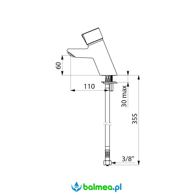 Bateria czasowa, umywakowa, stojąca z przyciskiem do delikatnego uruchamiania. Pokrętło wykonane z metalu a w nim regulacja temperatury. Bateria wykonana z litego, chromowanego mosiądzu odpornego na wszelkie ataki wandalizmu. Czas wypływu nastawiony na 7 sekund. Wydajność ustawiona na 3 l/min, przy czym istnieje możliwość rgulacji wydajności od 1,5 do 6 l/min. Sito wypływowe wykonane z tworzywa antyosadowego. Zasilanie wodne: wężyki PEX 3/8″ z filtrami i zaworami zwrotnymi. Długość wylewki 110 mm, wysokość wylewki 60 mm. Techonlogia Soft umożliwia korzystanie z urządzenia dzieciom, osobom starszym i niepełnosprawnym nie używając siły. Gwarancja 10 lat.