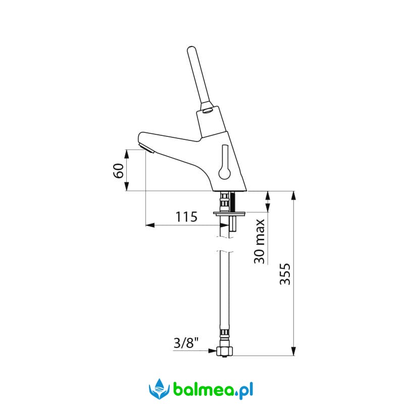 Bateria czasowa, umywakowa, stojąca z drążkiem dla osób niepełnosprawnych. Bateria wykonana z litego, chromowanego mosiądzu odpornego na wszelkie ataki wandalizmu. Czas wypływu nastawiony na 7 sekund. Wydajność ustawiona na 3 l/min, przy czym istnieje możliwość regulacji wydajności od 1,4 do 6 l/min. Sito wypływowe wykonane z tworzywa antyosadowego. Zasilanie wodne: wężyki PEX 3/8″ z filtrami i zaworami zwrotnymi. Długość wylewki 115 mm, wysokość wylewki 60 mm. Techonlogia Soft umożliwia korzystanie z urządzenia dzieciom, osobom starszym i niepełnosprawnym nie używając siły. Gwarancja 30 lat.