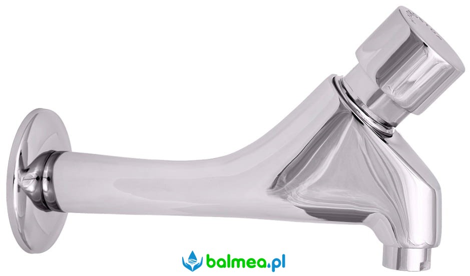 Bateria ścienna umywalkowa samozamykająca. Podłączenie do wody wstępnie zmieszanej lub zimnej. Czas wypływu wody ok. 5 sekund. Przyłącze 1/2". Korpus mosiężny chromowany. Klasa przepływu Z. Zalecane ciśnienie wody od 0,5 do 6 bar.