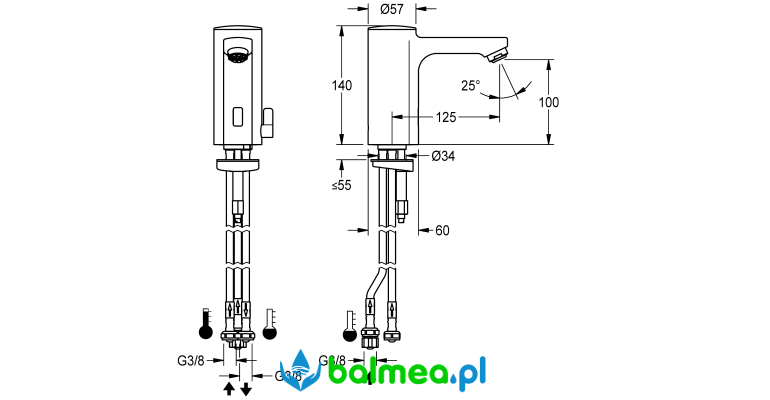 Bateria umywalkowa pionowa F5 FRANKE sterowana optoelektronicznie z regulacją temperatury do podgrzewaczy