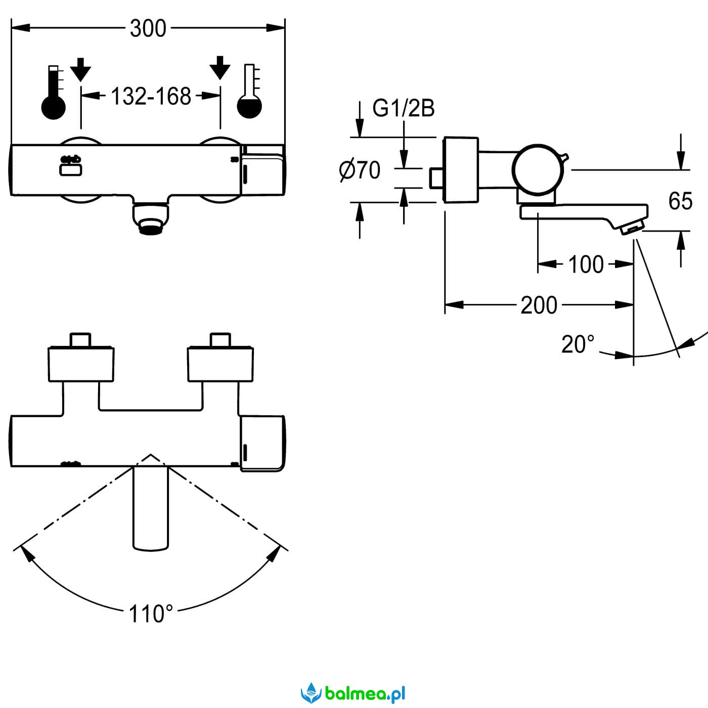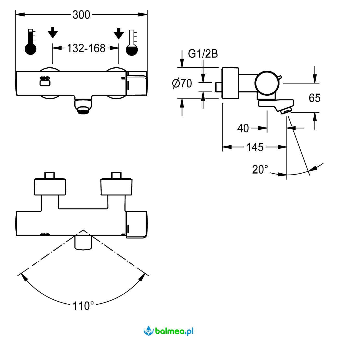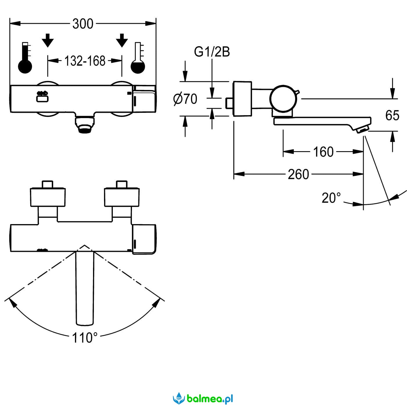 Bateria posiada termostat z metalowym uchwytem oraz regulowany, zabezpieczony przed przekręceniem ogranicznik temperatury, zapewniający stabilne i bezpieczne parametry wypływu. Konstrukcja umożliwia również przeprowadzenie ręcznej dezynfekcji termicznej. Model przystosowany jest do podłączenia do instalacji ciepłej i zimnej wody.