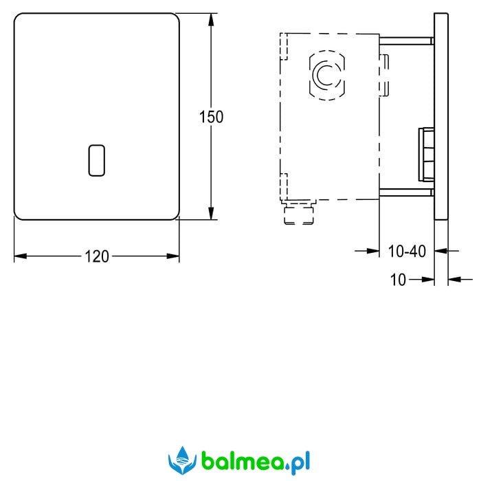 Bezdotykowy mechanizm podtynkowy spłukujący F5E do pisuarów, zasilany sieciowo, bateryjnie lub z systemu A3000 open. Urządzenie posiada automatyczne spłukiwanie 24 godzin po ostatnim uruchomieniu. Panel wykonany jest ze stali szlachetnej o wymiarach 120 x 150 mm z niewidocznymi śrubami mocującymi. W skład zestawu wchodzi: samozamykający zawór elektromagnetyczny, sitko, elektronika sterująca z czujnikiem, ramka montażowa, śruby.