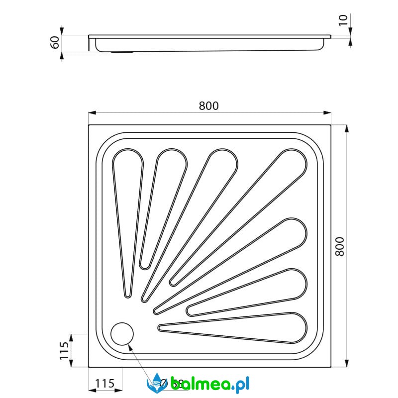 Brodzik prysznicowy ze stali nierdzewnej 80x80cm