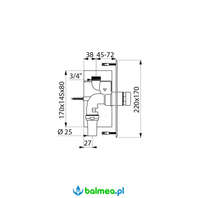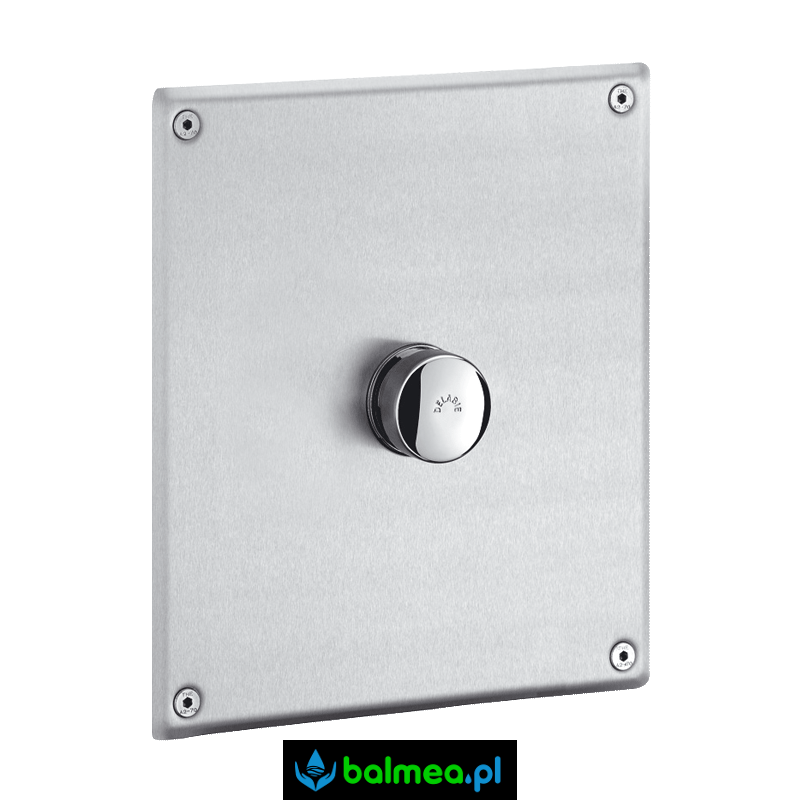 Montowany podtynkowo na przyłączu ¾". Samozamykający, ciśnieniowy mechanizm spłukujący z litego mosiądzu z chromowanym przyciskiem i stalową płytką maskującą. Panel przedni wykonany ze stali szlachetnej o wymiarach 220 x 170 mm w wykończeniu satynowym zabezpieczony śrubami antykradzieżowymi.