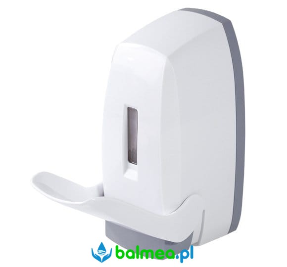 Dozownik łokciowy płynu dezynfekcyjnego odpowiedni również do mydła w płynie. Wykonany z tworzywa sztucznego ABS w białym kolorze ze zbiornikiem o pojemności 0.5 litra. Dozownik z okienkiem pozwala kontrolować ilość płynu w zbiorniku. Korzystanie z tego rodzaju dozowników jest bardzo higieniczne. Dozownik zamykany na zatrzask.