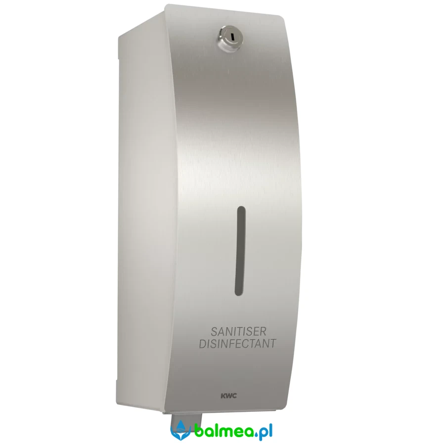 Ścienny dozownik środków dezynfekcyjnych KWC z linii STRATOS o pojemności 800 ml. Obudowa wykonana ze stali szlachetnej, powierzchnia matowa o uszlachetnionym wykończeniu frontu InoxPlus, zmniejszającym odciskanie się palców i ułatwiającym utrzymanie w czystości. Grubość materiału 1,5 mm. Zaokrąglony front z wziernikiem i symbolem sposobu obsług. Uniwersalny design dopasowuje się do każdego pomieszczenia. Dozownik zabezpieczony zamkiem bębenkowym na kluczyk standardowy Franke. Przystosowany do środkow dezynfekujących w płynie i emulsji. Pojemnik do wielokrotnego napełniania. Dźwignia z tworzywa sztucznego. W skład zestawu wchodzą wkręty ze stali szlachetnej i kołki rozporowe.