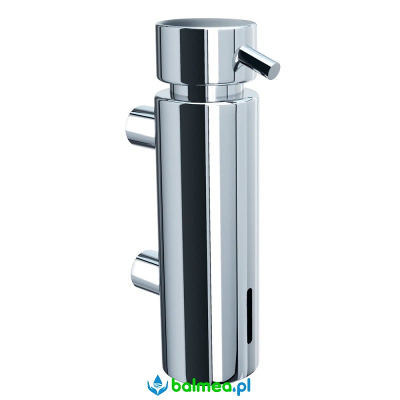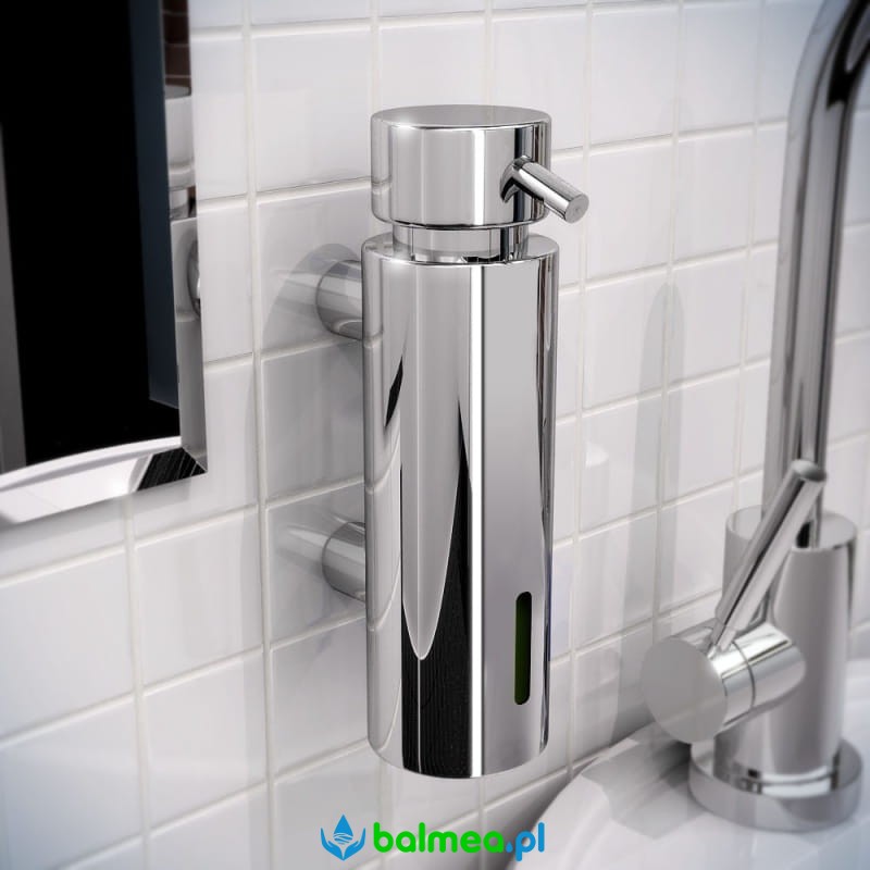 Dozownik mydła w płynie, którego obudowana wykonana jest z mosiądzu chromowanego. Pojemność 300 ml, mydło uzupełniane jest z pojemnika zbiorczego. Zbiornik na mydło jest wyjmowany i wykonany z tworzywa sztucznego, co ułatwia okresowe czyszczenie wnętrza. Okienko do kontroli stanu zapasu. Dozownik zabezpieczony trwałym stalowym zamkiem.