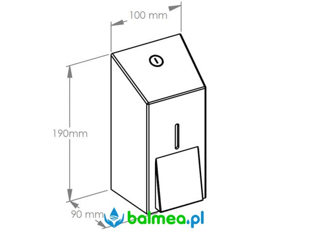 Dozownik mydła w płynie wykonany z wysokiej jakości stali szlachetnej polerowanej na wysoki połysk. Mydło uzupełniane jest z pojemnika zbiorczego. Pompkę i wewnętrzny zbiornik z tworzywa można wyjąć, co ułatwia utrzymanie dozownika w czystości. Zasobnik zabezpieczony trwałym stalowym zamkiem bębenkowym.