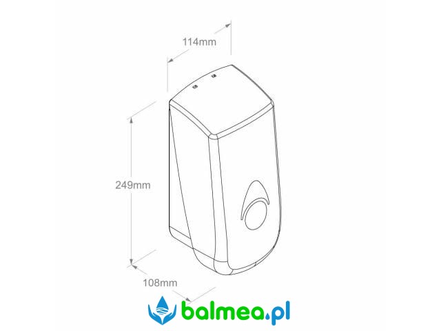 Przeznaczony do wielkorotnego napełniania mydłem z opakowania zbiorczego, co jest najbardziej efektywne ekonomicznie. Dozownik jest wykonany z trwałego tworzywa sztucznego, w kolorze czarnym, co nadaje mu nowoczesny i stylowy wygląd. Dzięki temu ładnie komponuje się z innymi elementami wyposażenia łazienki. Urządzenie pozwala na łatwe i wygodne dozowanie łokciem dzięki przedniej pokrywie która jest przy okazji przyciskiem. Dodatkowo wyposażony w kluczyk, który chroni wkład przed osobami niepowołanymi.