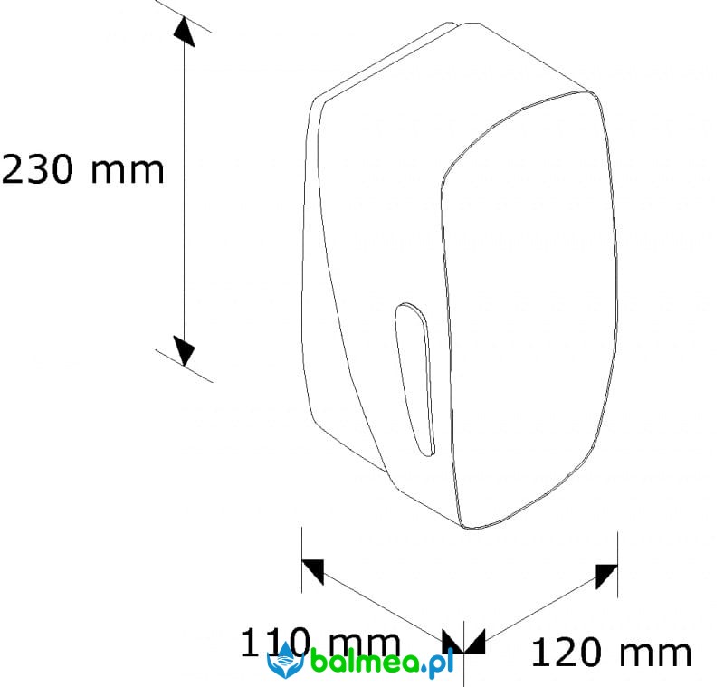 Automatyczny dozownik wyposażony jest w unikalny system programowania wielkości dozy podawanego mydła 0,2 ml, 0,8 ml lub 1,3 ml. Wykonany z tworzywa sztucznego ABS w kolorze białym, pojemność zbiornika 1 litr. Mydło uzupełniane z karnistra. Zamykany na kluczyk.