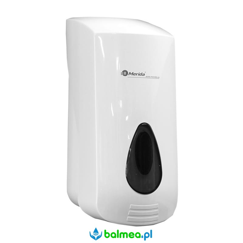 Dozownik pasty do mycia rąk Top firmy Merida wykonany jest z wysokiej jakości, bardzo wytrzymałego tworzywa ABS w białym kolorze o pojemności 2000 ml. Dozownik z szarym okienkiem, które umożliwia sprawdzenie ilości. Dozownik zamykany jest na kluczyk. Pasta uzupełniana jest z pojemnika zbiorczego. Zbiornik łatwo wyjmowalny w celu jego umycia. Posiada specjalną czerwoną przykrywkę ułatwiającą opróżnianie zbiornika, dzięki czemu pasta nie pozostaje na ściankach zbiornika.
