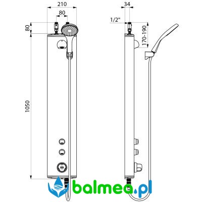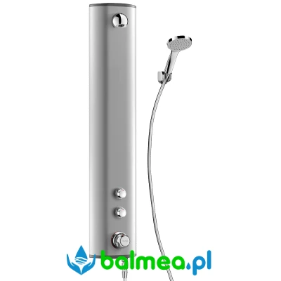 Panel wykonany jest z anodowanego aluminium i wyposażony w termostatyczną baterię natryskową SECURITHERM. Podłączenie wody realizowane jest od góry poprzez proste zawory odcinające Z1/2".