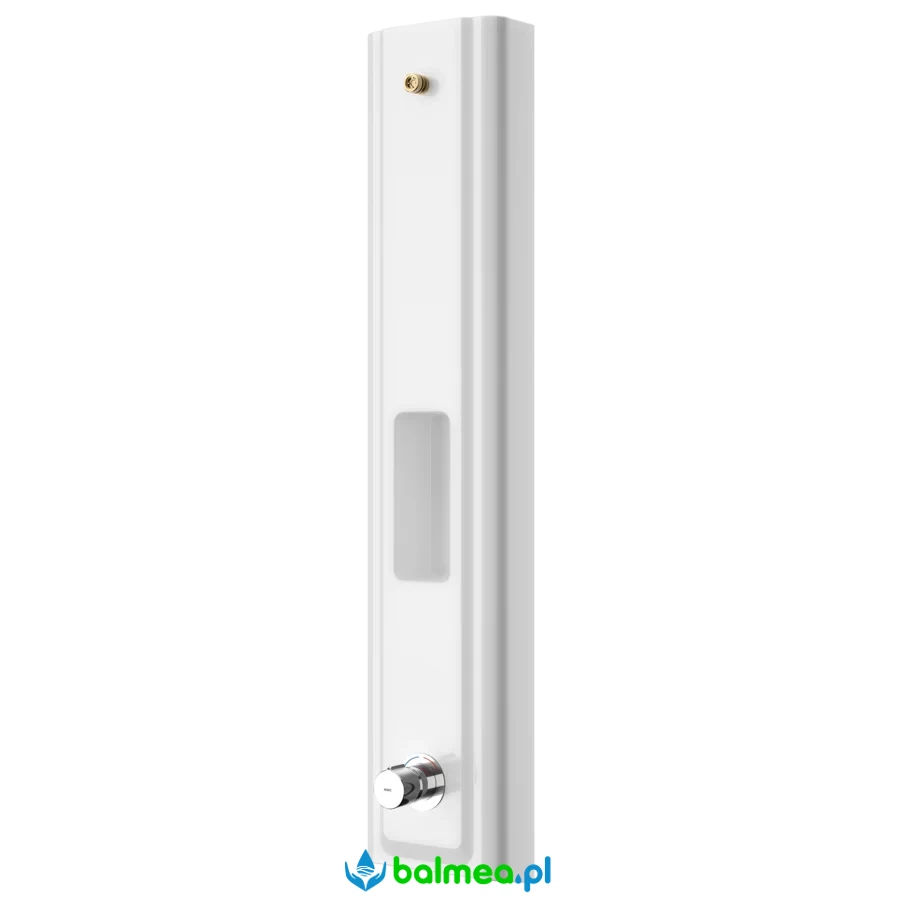 Obudowa wykonana jest ze związanego żywicą kompozytu mineralnego MIRANIT o gładkiej, nieporowatej powierzchni odpornej na temperaturę do 80°C, w kolorze bieli alpejskiej. Panel posiada lekko wysuniętą powierzchnię funkcjonalną oraz bezspoinowo wyprofilowaną półkę na żel pod prysznic. Wężyki przyłączeniowe wyposażone są w zamykany regulator przepływu wody, zaworki zwrotne oraz sitka.