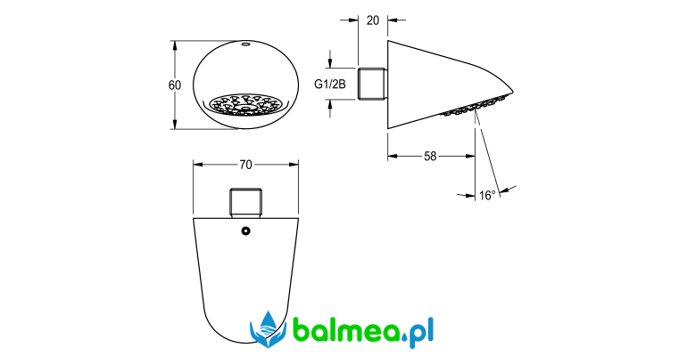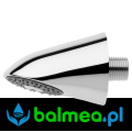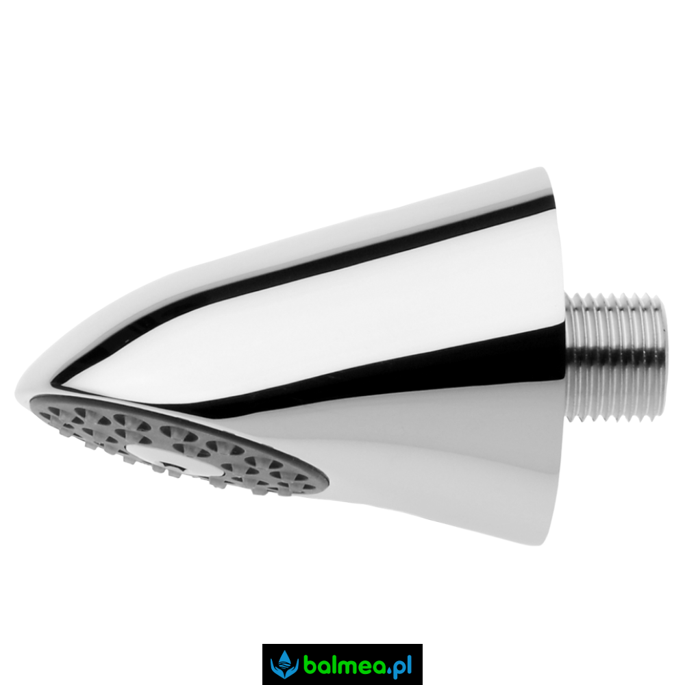 Głowica prysznicowa naścienna Franke AQUAJET-Slimline DN 15. Sitko strumieniowe z tworzywa sztucznego, wyposażone w system odkamieniający. Kąt nachylenia 16°. Wytwarzająca niewielką ilość mgiełki wodnej. Kształt zapobiegający próbom samobójczym. Obudowa przystosowana do montażu opcjonalnego zabezpieczenia przed przekręceniem. Mosiądz polerowany, powłoka chromowana. Regulacja przepływu 0,15 l/s.