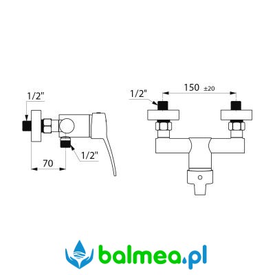 Bateria wyposażona jest w pełny uchwyt, przyłącze do węża natryskowego Z1/2" ze zintegrowanym zaworem zwrotnym, standardowe mimośrody Z1/2" Z3/4" oraz filtry i zawory zwrotne.