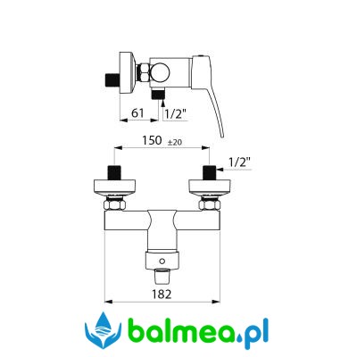 Bateria posiada przyłącze do węża natryskowego Z1/2" ze zintegrowanym zaworem zwrotnym oraz mimośrody STOP/CHECK Z1/2" Z3/4".