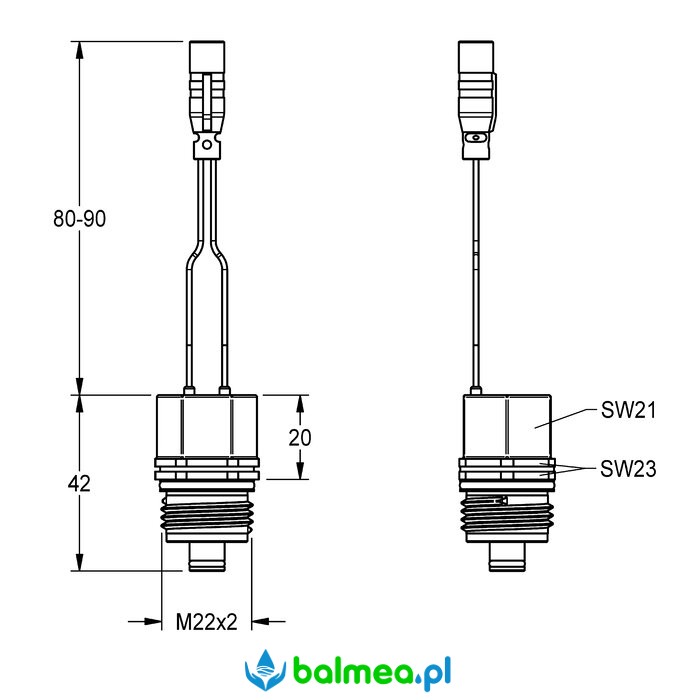 Wyposażony w wodoodporną wtyczkę oraz zintegrowane sitko filtrujące zanieczyszczenia.