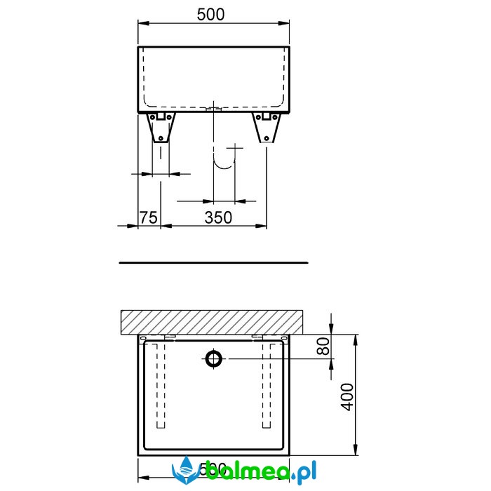 Wyposażona w odpływ sitkowy DN 40. Stalowe wsporniki ścienne powlekane proszkowo.