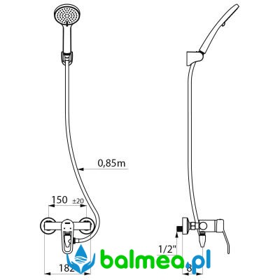W zestawie znajduje się słuchawka natryskowa nr 813 z wężem nr 836T3 oraz chromowany, ruchomy uchwyt ścienny nr 845. Całość uzupełnia złączka antystagnacyjna WZ1/2", umożliwiająca automatyczne opróżnianie węża i słuchawki po użyciu.