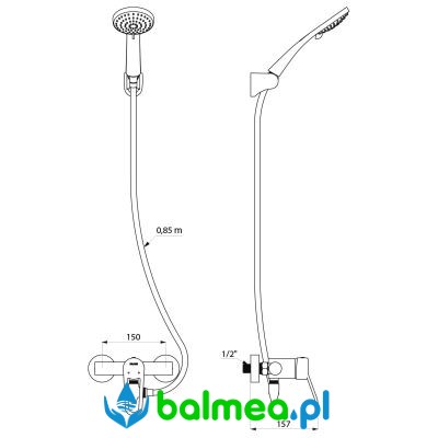 W zestawie znajduje się słuchawka natryskowa (nr 813), wąż (nr 836T3) oraz chromowany, ruchomy uchwyt ścienny (nr 845). Zastosowano również złączkę antystagnacyjną WZ1/2", umożliwiającą automatyczne opróżnianie węża i słuchawki po użyciu.