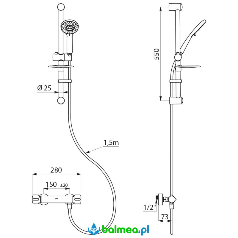 Zestaw prysznicowy z antyosadową baterią termostatyczną z ochroną przeciwpoparzeniową SECURITHERM