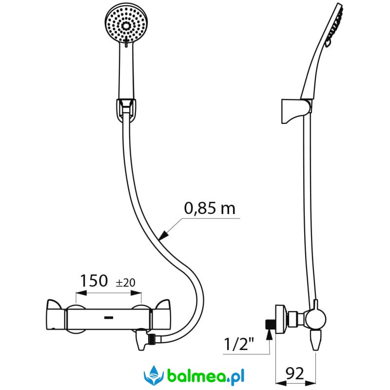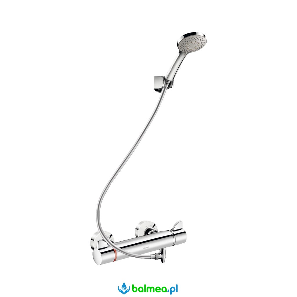 Dwuuchwytowa bateria termostatyczna SECURITHERM z urządzeniem samoopróżniającym. Bateria chroni przed oparzeniem automatycznie zamyka wypływu w przypadku braku wody zimnej lub ciepłej. Istnieje możliwość przeprowadzenia dezynfekcji termicznej, bez demontażu uchwytu i zamykania zasilania wody zimnej. Produkt posiada antyosadową głowicę termostatyczną do regulacji temperatury. Wypływ ustawiony na 9 l/min. Bateria z mimośrodami Z 1/2" Z 3/4"dolne przyłącze do węża natryskowego Z½". Filtry i zawory zwrotne zintegrowane w przyłączach W¾". Bateria przystosowana do osób niepełnosprawnych. Gwarancja 30 lat.