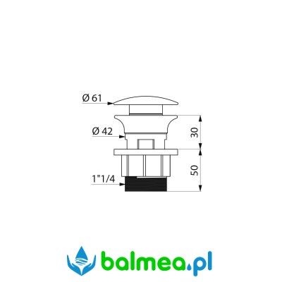 Korek umywalkowy Z1"1/4 typu KLIK-KLAK (ON/OFF), wykonany z elementami ze stali nierdzewnej (Inox), przeznaczony do swobodnego przepływu wody.