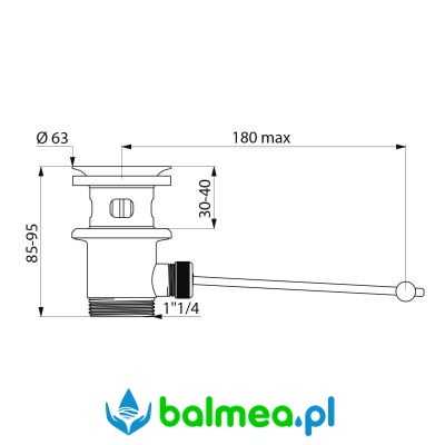Korek umywalkowy 1"1/4 wyposażony w mechanizm zatrzaskowy, umożliwiający wygodne otwieranie i zamykanie odpływu.
