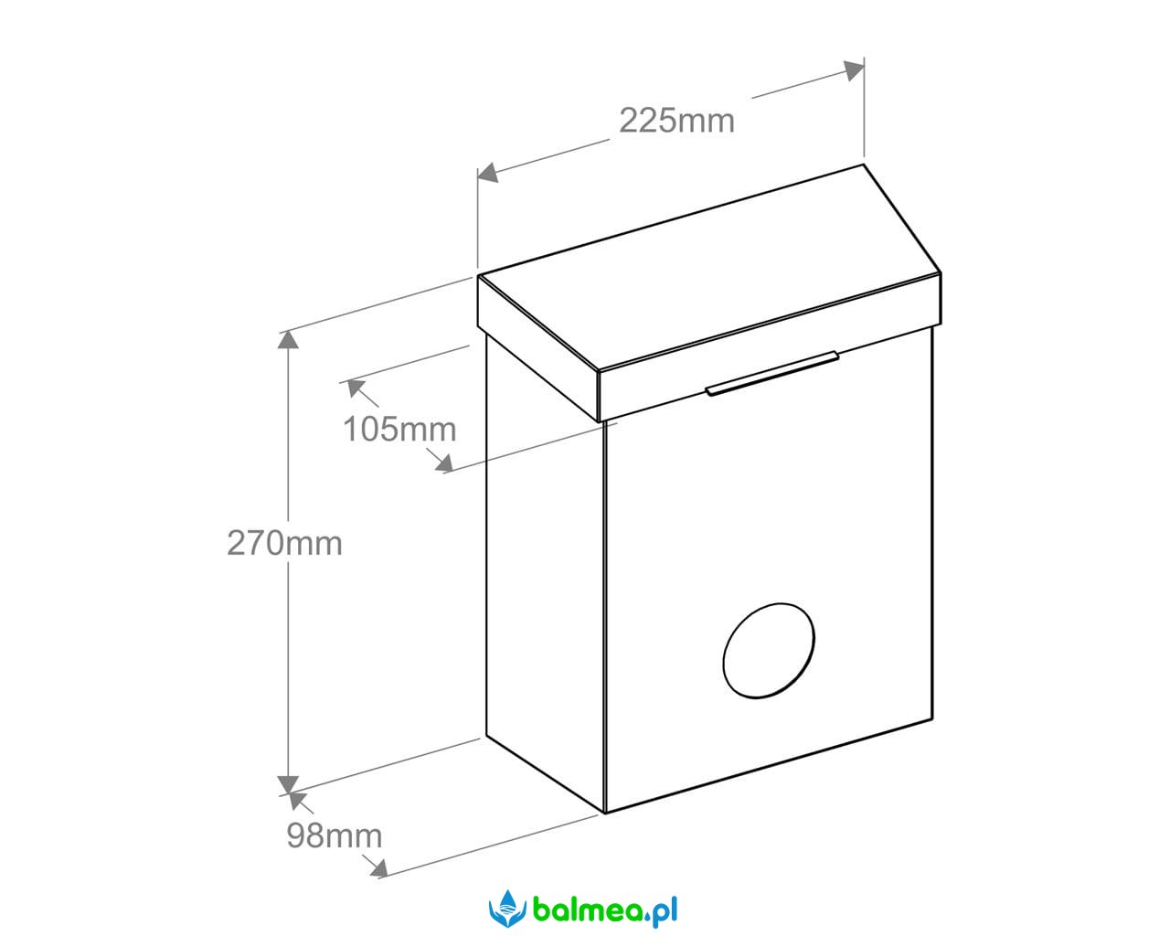 Wykonany ze stali nierdzewnej wykończonej na połysk. Pojemność kosza 4,4 litra. Wyposażony w pojemnik na torebki higieniczne. Wkład z torebkami 30 szt. wsuwa się od spodu pojemnika. Łączenia boków spawane i szlifowane, niewidoczne zawiasy.