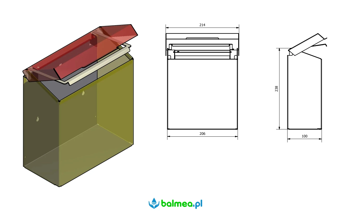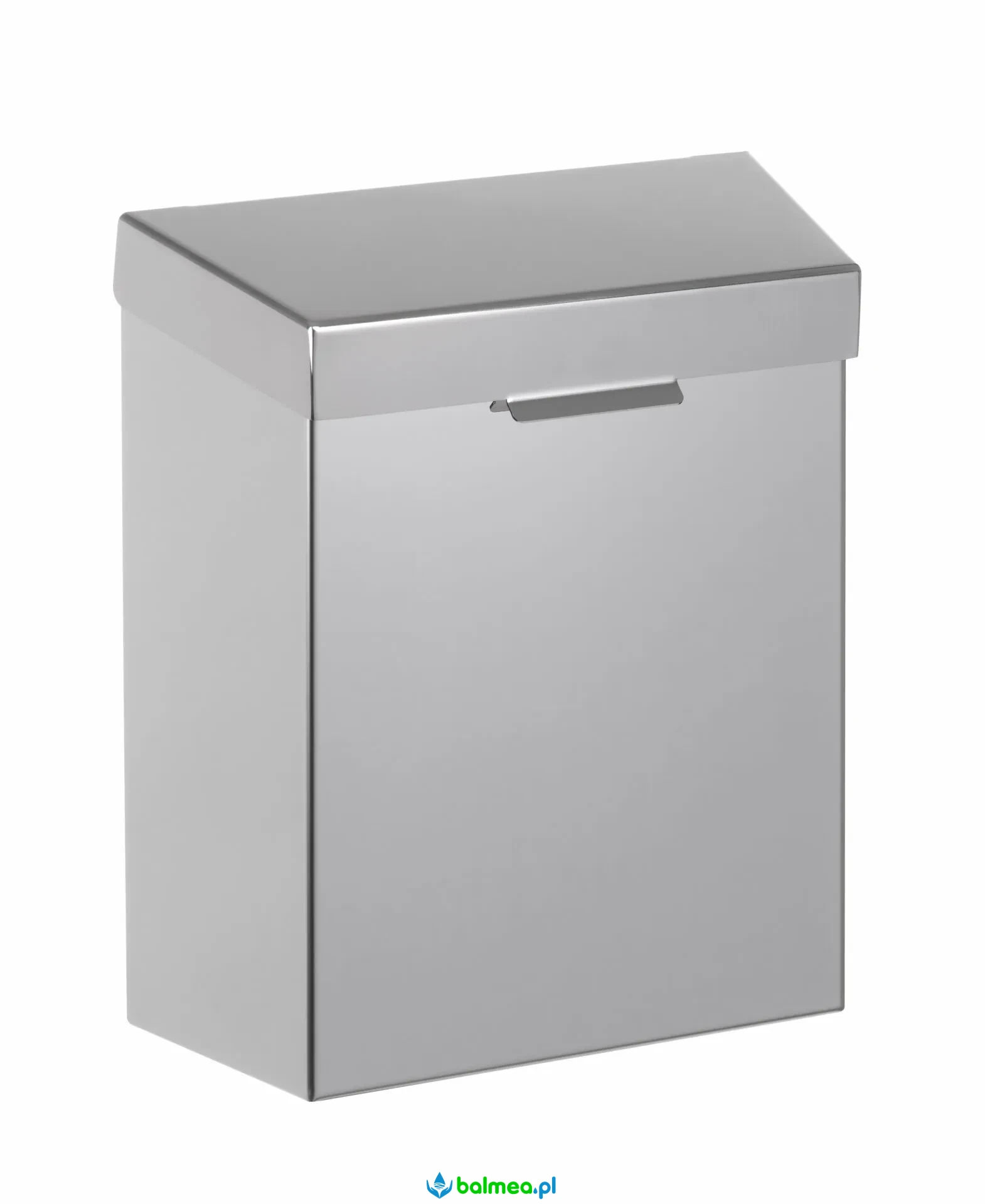 Niewielkich rozmiarów pojemnik na odpadki higieniczne z pokrywą oraz ramką do zamocowania jednorazowych worków. W całości wykonany z wysokiej jakości stali nierdzewnej AISI 304 o wykończeniu satynowym. Montowany na ścianie. Unoszona pokrywa ukrywa zawartość oraz zatrzymuje przykre zapachy. Niewielkie rozmiary umożliwiają zastosowanie w pomieszczeniu toalety tuż przy misce sedesowej, bez ograniczania swobody ruchu.
