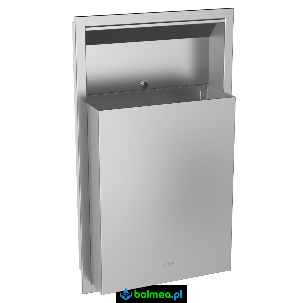 Wykonany ze szlachetnej stali nierdzewnej w matowym wykończeniu kosz o pojemności 23 litrów przeznaczony do montażu podtynkowego. Mocowany w ramie naściennej, częściowo wystający ze ściany. Wysoka jakość materiału i wykonania, grubość stali 0,8 mm. Idealny do każdego zastosowania, gdzie wymagana jest trwałość i łatwość utrzymania czystości. Wyjęcie kosza umożliwia zamek bębenkowy z kluczem uniwersalnym Franke. W komplecie kołki z nierdzewnymi wkrętami.