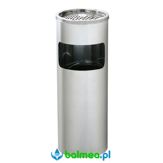 Wolnostojąca koszopopielnica przeznaczona na odpady i niedopałki. Wewnątrz wiaderko o pojemności 18 litrów, zdejmowane sito na niedopałki. Stal nierdzewna polerowana.