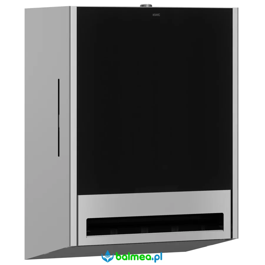 Obudowa ze stali o grubości 1,2 mm o uszlachetnionym wykończeniu INOXPlus redukującym odciskanie się palców i ułatwiającym utrzymanie w czystości (easy to clean). Podajnik przeznaczony do montażu ściennego. Pomieści rolkę o maksymalnej średnicy 200 mm i szerokości 205 mm. Posiada okienko do kontroli zużytego ręcznika oraz zamek bębenkowy z uniwersalnym kluczykiem KWC. Długość perforacji papieru 260 mm. Urządzenie posiada regulowany uchwyt na rolkę, który ułatwia dozowanie papieru. W komplecie materiały montażowe.