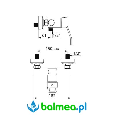 Bateria posiada przyłącze do węża natryskowego Z1/2" ze zintegrowanym zaworem zwrotnym oraz mimośrody STOP/CHECK Z1/2" Z3/4".