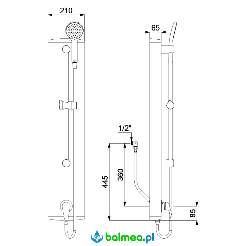 Mechaniczny panel prysznicowy z aluminium anodowanego