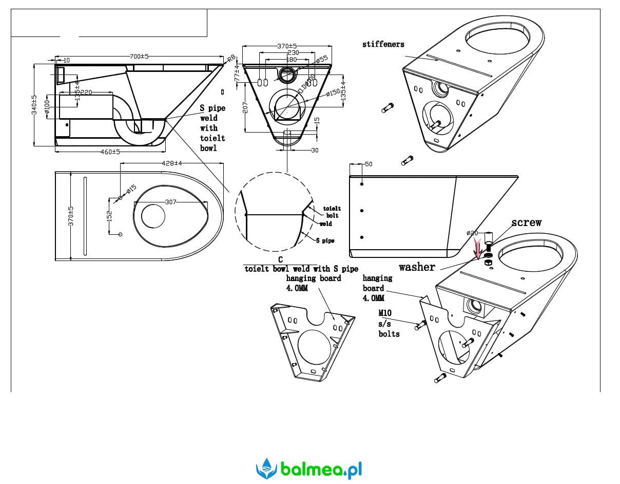 Miska WC dla niepełnosprawnych ze stali nierdzewnej wisząca