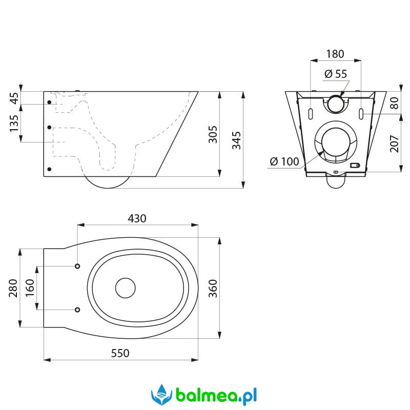 Wykonana z stali nierdzewnej o wykończeniu matowym. Odpowiednia dla toalet publicznych w galeriach handlowych, dworcach, obiektach sportowych itd. Kompatybilna ze standardowymi stelażami dostępnymi na rynku. Stal bakteriostatyczna. Polerowane wnętrze miski, zaokrąglone brzegi. Poziomy odpływ wody Ø100 mm, poziome zasilanie wody Ø55 mm. Prosta i szybka instalacja, montaż od przodu dzięki płytce z Inoxu. W zestawie z płytą montażową i 6 śrubami antykradzieżowymi TORX. Oszczędność w użyciu wody, funkcjonuje od 4 litrów..