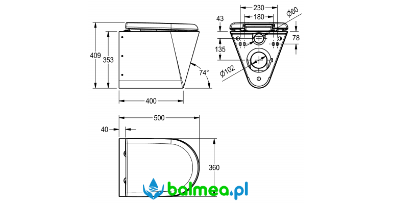 W komplecie uchylna, szara deska sedesowa z pokrywą.