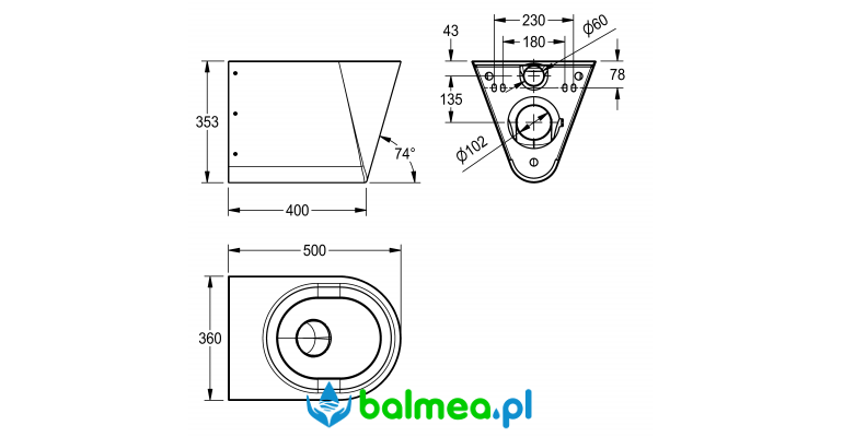 Przystosowana do montażu z ręcznym jak i automatycznym systemem spłukiwania o pojemności minimum 4 litry. Odpływ tylny poziomy. Syfon osłonięty DN 100.