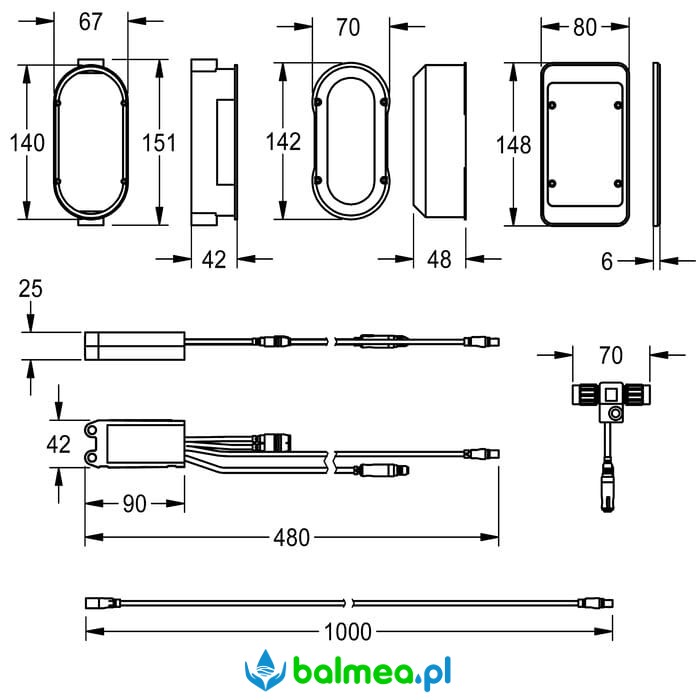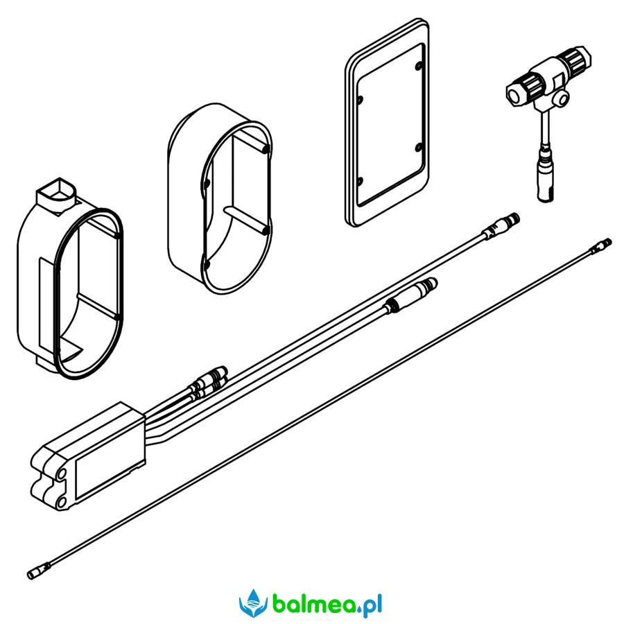 z rozdzielaczem elektrycznym typu T do montażu podtynkowego oraz z puszką podtynkową i osłoną z tworzywa sztucznego 150 x 80 mm. Do integracji z systemem zarządzania wodą Aqua 3000 open, 24 V DC.
