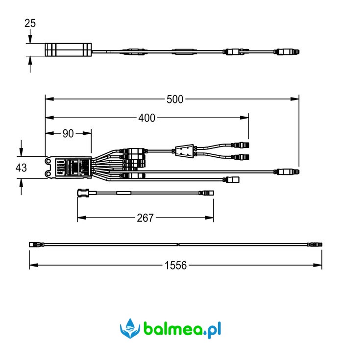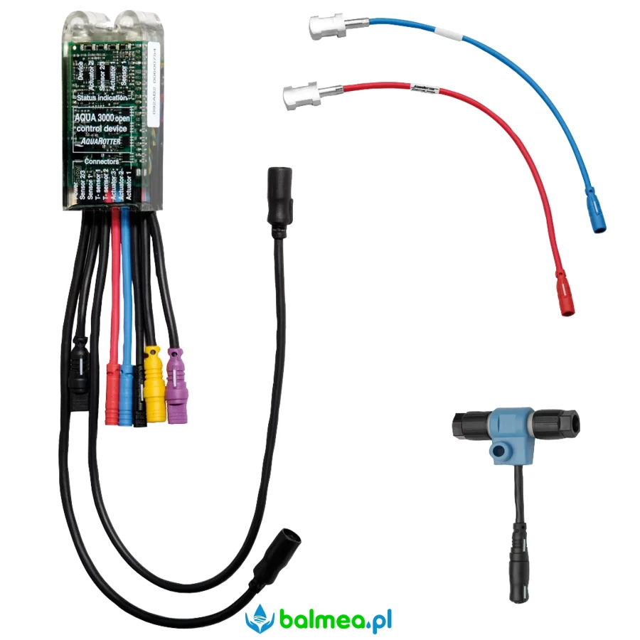 W zestawie znajduje się rozdzielacz elektryczny typu T oraz jeden dotykowy czujnik temperatury z przedłużaczem o długości 1,5 m. Zasilanie: 24 V DC.