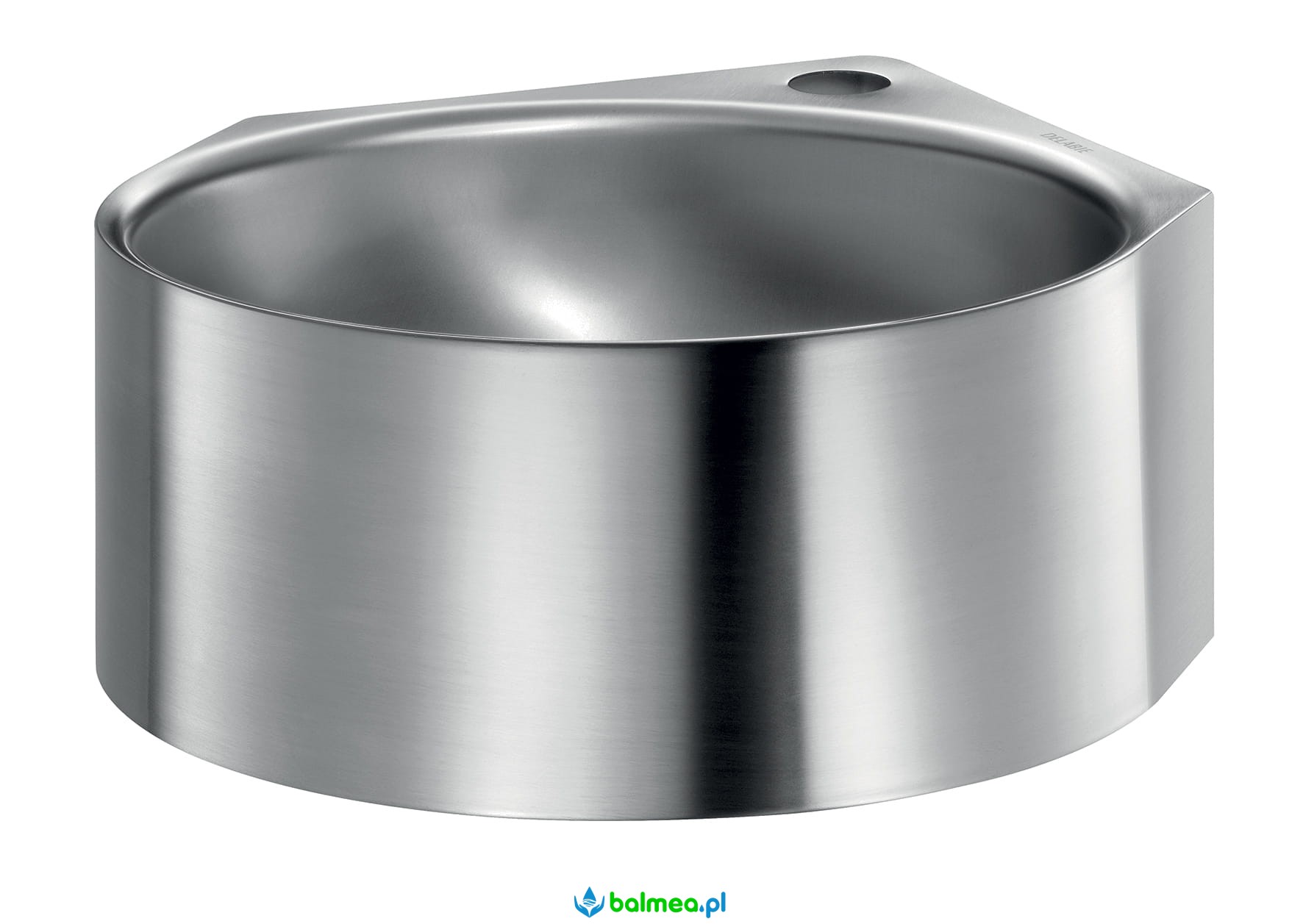 Ścienna umywalka do instalacji narożnej kąt 90 stopni, wykonana ze stali Inox 304. Wykończenie satynowe. Stal odporna na wszelkie ataki wandalizmu. Nie posiada otworu przelewowego. Zaokrąglone krawędzie umywalki zmniejszają ryzyko skaleczeniem. Umywalka z centralnym otworem na armataurę. W komplecie z mocowaniami i korkiem.