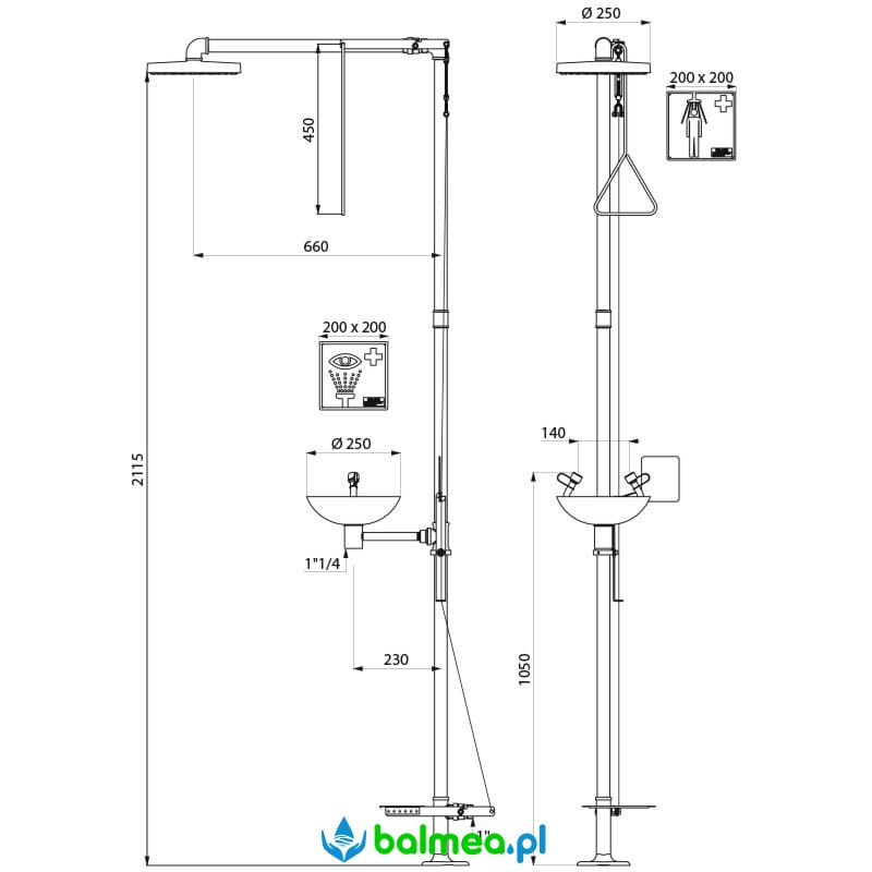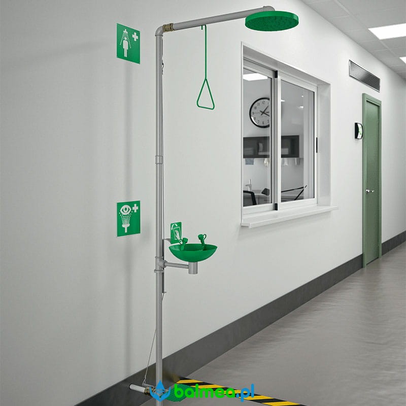 Natrysk bezpieczeństwa i oczomyjka na kolumnie