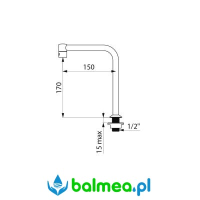 Model o wymiarach L.150 mm i H.170 mm wykonany jest z chromowanego mosiądzu, co zapewnia trwałość oraz odporność na korozję i intensywne użytkowanie.