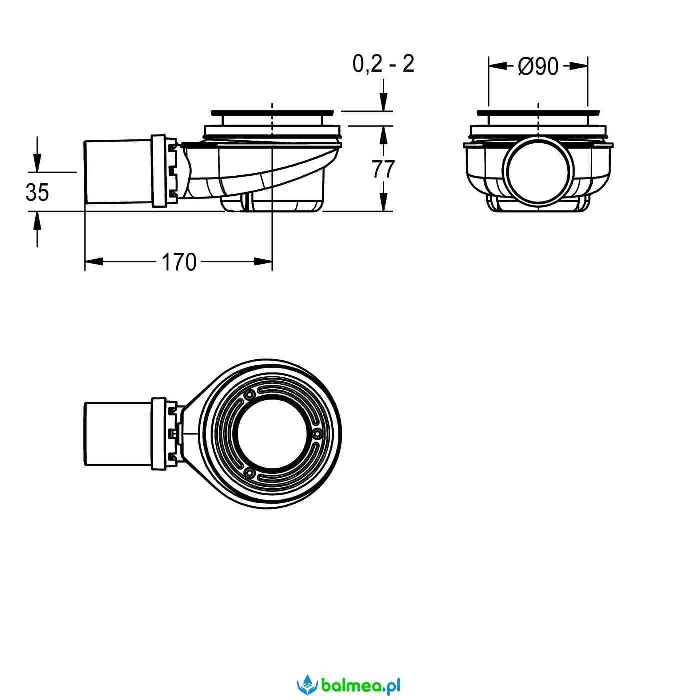 Płytki syfon do brodzika o średnicy odpływu 90 mm