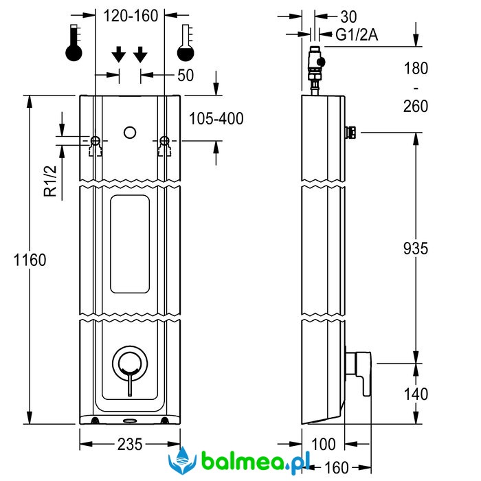 Wymiary obudowy: 235 x 1160 x 100 mm (szer. x wys. x głęb.)