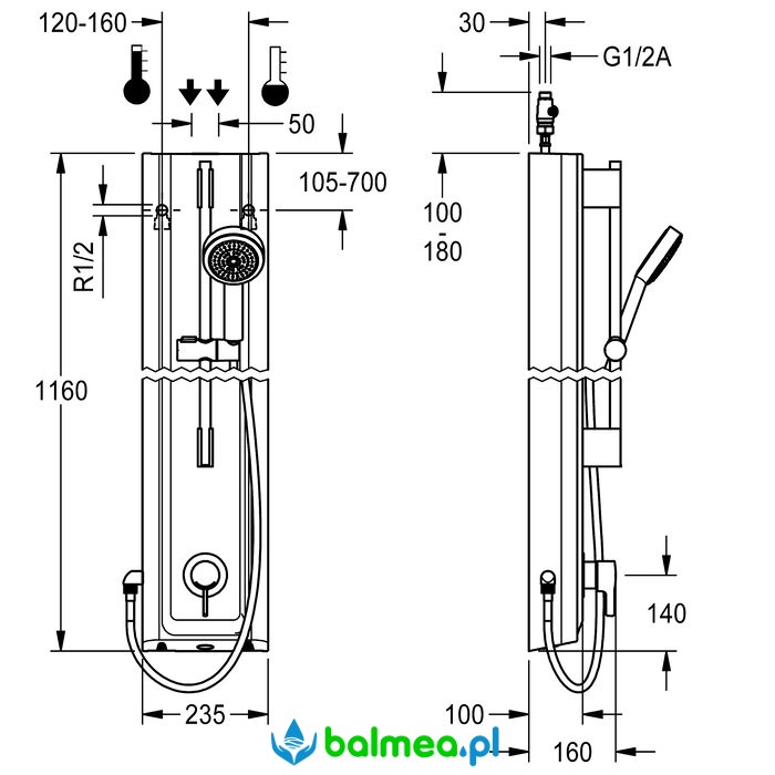 Wymiary obudowy: 235 x 1160 x 100 mm (szer. x wys. x głęb.)