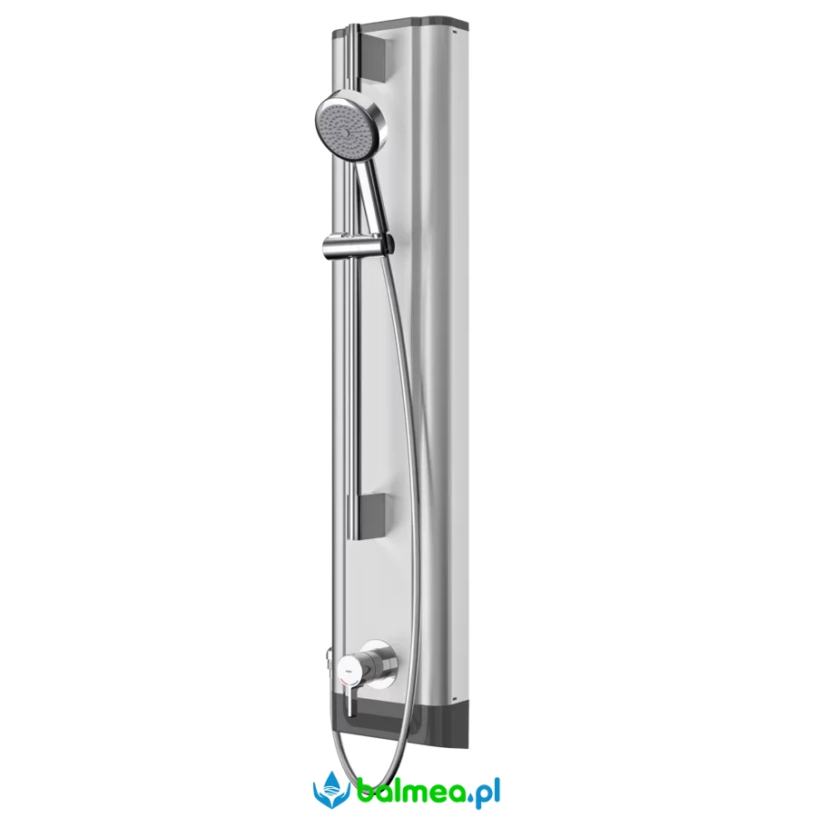Panel natryskowy F5L-Therm wykonany ze stali szlachetnej, przeznaczony do montażu natynkowego, wyposażony w jednouchwytową baterię termostatyczną DN 15 oraz słuchawkę natryskową.